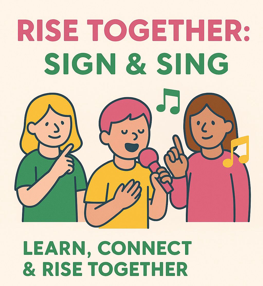 running from 11:00am to 12:30pm for our RISE TOGETHER: Sign & Sing sessions – where our amazing service users lead fun, interactive Makaton sessions using nursery stories and rhymes. These sessions are open to children, families, and community members, offering a welcoming space to learn basic Makaton in a relaxed and engaging way. It’s more than just learning signs – it’s a chance for the young people we support to grow in confidence, feel empowered, and share their skills in a community where they don’t often get the chance to lead. Enjoy free tea, coffee, juice, and cake, and be part of a warm, inclusive space where everyone rises together.